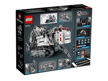 - LEGO® Technic model bagru Liebherr R 9800 ovládaný aplikací prostřednictvím chytrého zařízení se 4 možnostmi volby obrazovky.